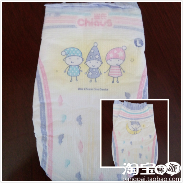 One Chiaus One Genius!铂金柔润金棉采用的是德国进口材料。摸起来绝对柔软薄轻!全新可爱图案,正面三个 安睡小天使,陪伴宝宝甜柔睡眠一整晚,双尿显,让妈妈及时发现,及时更换,让宝宝开心,妈妈省心。
