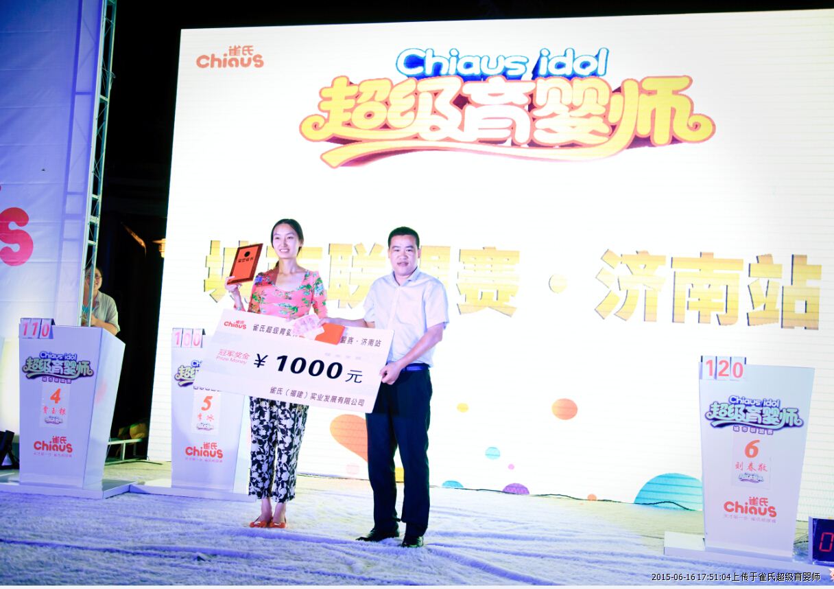 今夜注定无眠,10位选手都很强,我是比较幸运的一位,现场雀氏的老总直接给现金1000元简直太土豪了!这次我是天时地利人和,槐荫广场伴我长大的地方给予我智慧,观众朋友的加油鼓励给了我力量,雀氏纸尿裤搭建了一个如此好的平台。感谢雀氏,谢谢所有的工作人员,你们辛苦了!